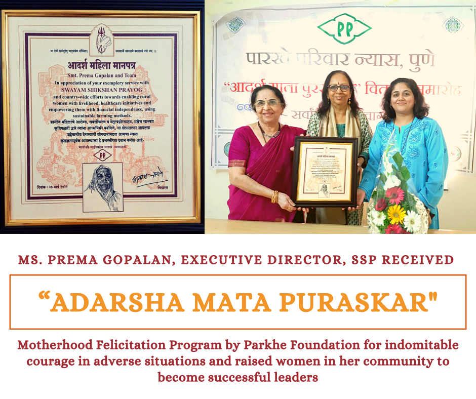 SSP has reached out to over 6 million people, and empowered over 300,000 women mostly from farming communities to revitalise agriculture and enterprise, and take on the roles of decision makers in their households, communities and local economies. SSP has received several global and national awards, such as the UNDP Equator award for women and agriculture, UNFCCC Lighthouse climate change and Schwab Foundation Social Entrepreneur award, between 2017-2019.